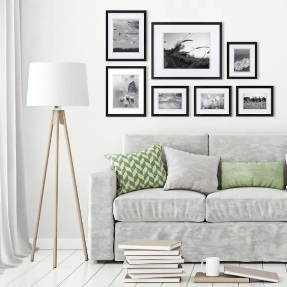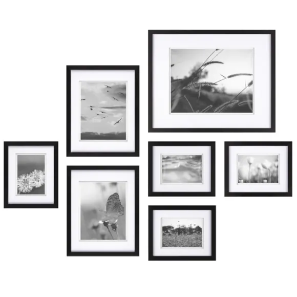 Create A Gorgeous Photo Wall Gallery With Our Black 7-Pc. Matted Gallery Wall Picture Frame Set. You’Ll Love Displaying Your Favorite Photos In Style. Set Includes Four (4) Small Frames, Two (2) Medium Frames, And One (1) Large Frame Gallery Style Fits A Minimum Space Up To 5 Ft. In Length And 5 Ft. In Height Crafted Of Wood Feature Black Frame Finish And Removable Double White Mats Frames Without Mats Accommodate Four (4) 8X10 In. Photos, Two (2) 11X14 In. Photos, And One (1) 16X20 In. Photo When Matted, Frames Accommodate Four (4) 5X7 In. Photos, Two (2) 8X10 In. Photos, And One (1) 11X14 In. Photo Includes Hanging Templates With Instructions Each Frame Hangs Vertically Or Horizontally Hangs From Back-Mounted Hardware Care: Dust With A Soft, Dry Cloth.This Item Is Available At Kirklands.Com Only, Not Available In Stores. Please Note: This Item Cannot Be Shipped To Apo/Fpo Addresses.