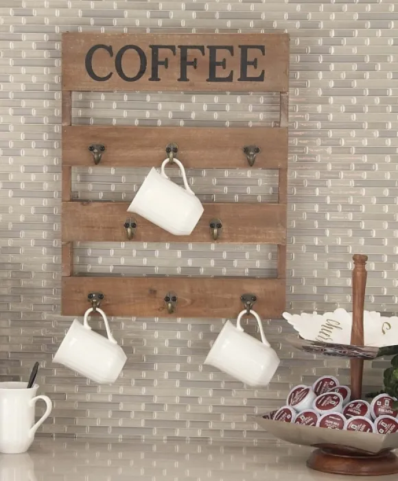 Give Yourself A Perfect Little Nook To Store Your Mugs With This Coffee Metal And Wood Plank Wall Hooks! It Will Be A Great Addition To Your Farmhouse Decor.Plaque Measures 15L X 3W X 19H In. Crafted Of Wood, Wood Composite, And Metal Natural Plank Finish Features Eight (8) Metal Hooks For Hanging Fistressed Brass Hook Finish Features The Word “Coffee” In Black Block Text Weight: 4 Lbs. Hangs From Back-Mounted Hardware Care: Dust With A Soft, Dry Cloth.This Item Is Available At Kirklands.Com Only, Not Available In Stores. Please Note: This Item Cannot Be Shipped To Apo/Fpo Addresses.