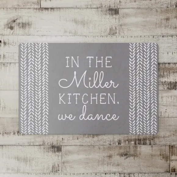 Do Your Happy Dance On This Personalized Gray Kitchen Dance Kitchen Mat. Make It Your Family’S Own As You Customize This White And Gray Floor Mat. Mat Measures 27L X 18W X 1H In.Crafted Of A Polyester Front And Rubber Backing For Non-Skid Resistancefeatures The Words “In The Kitchen, We Dance”Includes A Space For A Personalized Family Nametext Is In White Serif And Cursive Fontsgray Backgroundaccented With Dash Patterns On Both Endsdesigned And Printed In The Usacare: Spot Clean.This Item Is Available At Kirklands.Com Only, Not Available In Stores. Please Note: This Item Cannot Be Shipped To Apo/Fpo Addresses.All Personalized Item Sales Are Final And May Not Be Returned Or Exchanged.