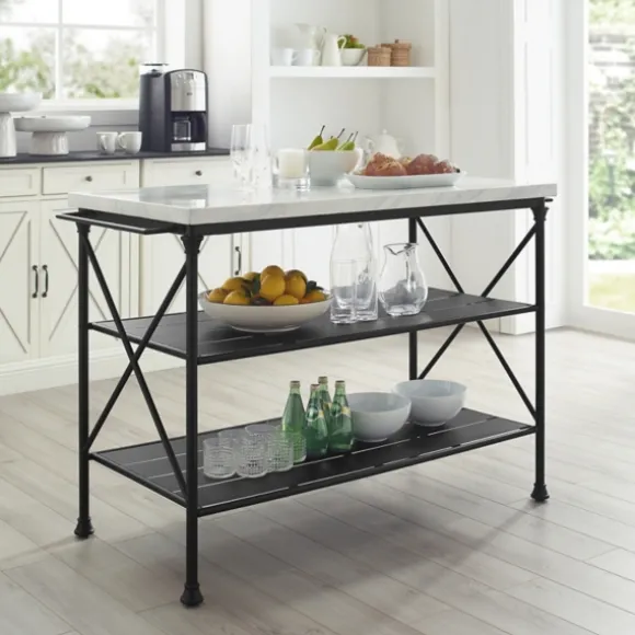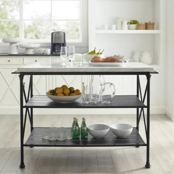 Our Faux Marble Top 3-Tier Melody Kitchen Island Will Bring Ample Storage And Convenience To Your Kitchen Prep. Pair With Our Counter Or Bar Stools For Added Dining Space!Island Measures 53.25L X 24W X 36H In.Crafted Of Metalfeatures Three (3) Tiersfaux Marble Topsolid Black Finish Basefrench Industrial Designassembly Requirednot Intended For Commercial Usecare: Dust With A Soft, Dry Cloth.This Item Is Available At Kirklands.Com Only, Not Available In Stores. Please Note: This Item Cannot Be Shipped To Apo/Fpo Addresses.