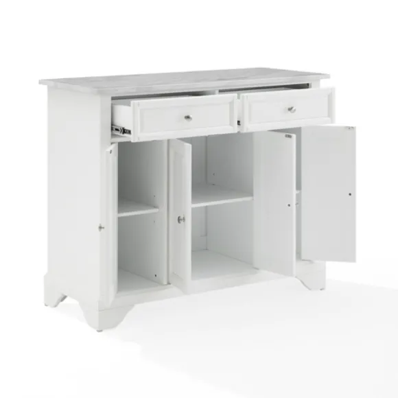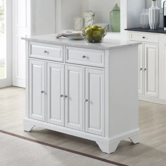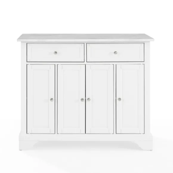 Our Gia All White Marble Kitchen Island Is The Perfect Piece To Expand Your Kitchen’S Surface Area! Complete With Bruched Nickel Hardware And A Variety Of Storage Options, This Sleek Piece Has It All. Island Measures 42.1L X 18W X 36H In.Crafted Of Wood Composite, Metal, And Faux Marblewhite Finish With Brushed Nickel Hardwarewhite Faux Marble Countertopfeatures A Panneled Door Designisland Includes Two (2) Drawers And Three (3) Cabinets With Adjustable Shelvesincludes Castor Wheels And Stationary Feet For Mobility Optionassembly Requirednot Intended For Commercial Usecare: Wipe Frame With A Soft, Damp Cloth.This Item Is Available At Kirklands.Com Only, Not Available In Stores. Please Note: This Item Cannot Be Shipped To Apo/Fpo Addresses.Warning:This Product Can Expose You To Chemicals Including Wood Dust And Lead Which Is Known To The State Of California To Cause Cancer And Birth Defects Or Other Reproductive Harm.For More Information Go Towww.P65Warnings.Ca.Gov .