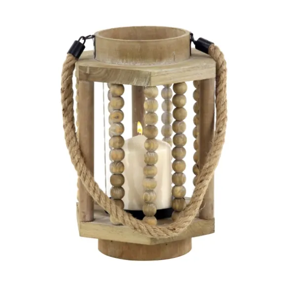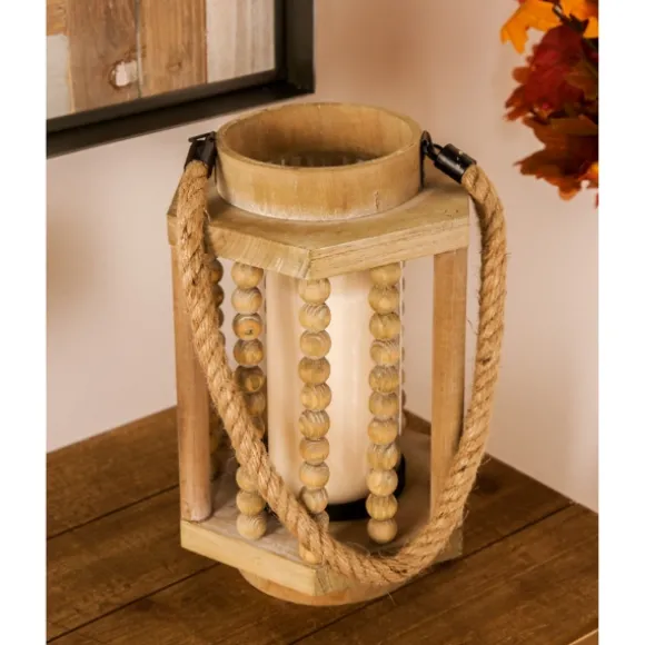 Create An Inviting Farmhouse Feel With This Natural Wood Beaded & Rope Handle Lantern. Its Geometric Shape And Fun Textu…
