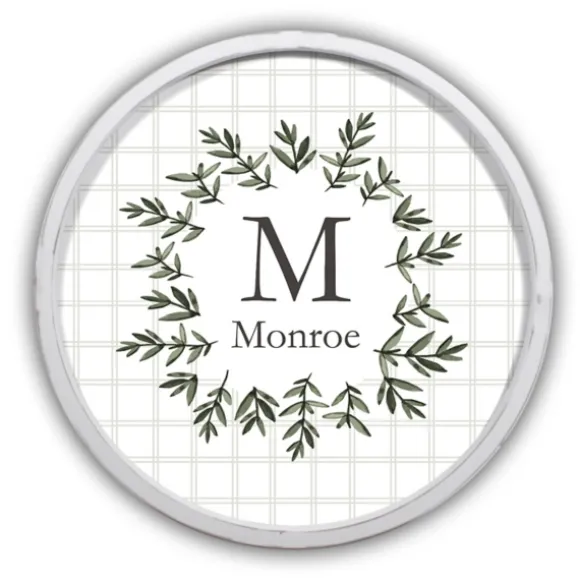 Add Some Family Flair To Your Walls With The Help Of This Personalized Monogram Leafy White Frame Plaque! You’Ll Adore The Wreath Design And The Windowpane Plaid Pattern. Plaque Measures 1.4W X 20 In. In Diameterprinted With Fade-Resistant, Uv Inkswrapped In A Round, Distressed White Framefeatures A Windowpane Plaid Pattern With A Leafy Wreath Designincludes A Space For Personalized Monogram And Namehues Of White, Green, And Blackmade In The Usaweight: 1.9 Lbs.Hangs From Back-Mounted Hardwarecare: Dust With A Soft, Dry Cloth.This Item Is Available At Kirklands.Com Only, Not Available In Stores. Please Note: This Item Cannot Be Shipped To Apo/Fpo Addresses.
