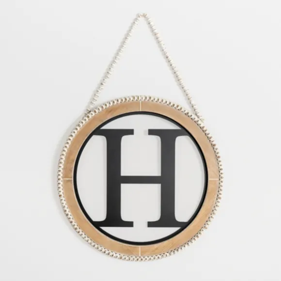 Kirkland’s Home Monogram Wall Decor-Whitewash Bead Trim Monogram H Plaque