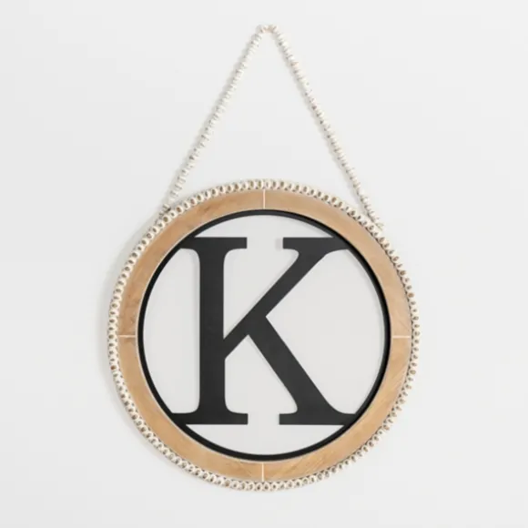 Kirkland’s Home Monogram Wall Decor-Whitewash Bead Trim Monogram K Plaque