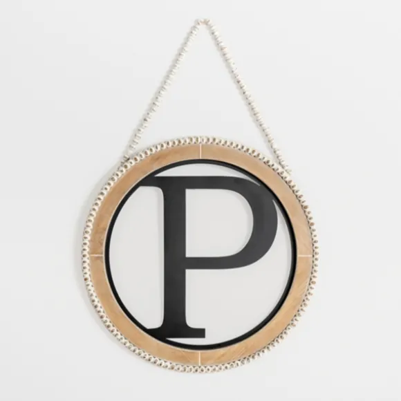 Kirkland’s Home Monogram Wall Decor-Whitewash Bead Trim Monogram P Plaque