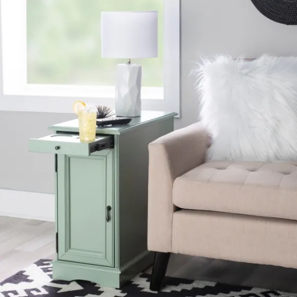 Our Aqua Accent Table With Charging Station Is The Ideal Chairside Companion! With Convenient Spots For Drinks And The Remote, Plus A Charging Station, This Versatile Table Is Crafted To Suit Your Needs.Table Measures 24L X 12W X 24H In.Crafted Of Woodaqua Blue Finishfeatures One (1) Door And One (1) Interior Shelf For Storagedrawer Pulls Out To Reveal One (1) Section For Remote/Cell Phone Storage And Two (2) Coastersflip-Up Top Opens To Reveal Two (2) Usb Ports And Two (2) Electrical Outletsblack Metal Hardware Finishplug-In Cord Measures 9.84 Ft. Longarrives Fully Assemblednot Intended For Commercial Usecare: Dust With A Soft, Dry Cloth.This Item Is Available At Kirklands.Com Only, Not Available In Stores. Please Note: This Item Cannot Be Shipped To Apo/Fpo Addresses.Warning:This Product Can Expose You To Chemicals Including Di-(2-Ethyl Hexyl) Phthalate, Which Is Known To The State Of California To Cause Cancer And Birth Defects Or Other Reproductive Harm.For More Information Go Towww.P65Warnings.Ca.Gov/Furniture