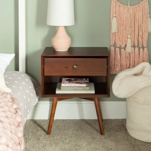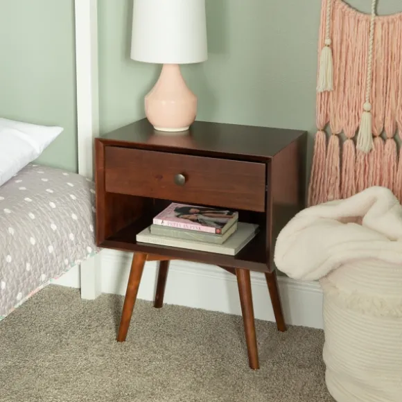 Bring Great Modern Style To Your Bedroom With Our Walnut 1-Drawer Mid Century Nightstand! This Nightstand Would Also Look Fantastic As An Accent Table In Your Living Room.Nightstand Measures 19.625L X 13.875W X 23.75H In.Crafted Of Solid Pine Wood With Wood Composite And Metalwalnut Finishgray Metal Hardware Finishfeatures One (1) Drawerdrawer Measures 18L X 11.31W X 4.75H In.Weight 19 Lbs.Weight Capacity: 75 Lbs.Full Assembly Requirednot Intended For Commercial Usecare: Dust With A Soft, Dry Cloth. This Item Is Available At Kirklands.Com Only, Not Available In Stores. Please Note: This Item Cannot Be Shipped To Apo/Fpo Addresses.