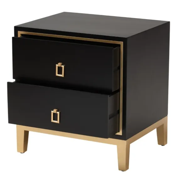 Bring A Glam Element Into Your Bedroom With This Black Wood & Gold Accent 2-Drawer Nightstand. Featuring Geometric Embellishments And A Two Tone Finish, It Flaunts A Sleek, Modern Design. Nightstand Measures 19.7L X 15.7W X 20.9H In.Crafted Of Engineered Wood And Metalblack Finishfeatures Two (2) Drawersaccented With Gold Metal Hardwaresquare Shapetapered Legsno Assembly Requirednot Intended For Commercial Usecare: Dust With A Soft, Dry Cloth.This Item Is Available At Kirklands.Com Only, Not Available In Stores. Please Note: This Item Cannot Be Shipped To Apo/Fpo Addresses.Warning:This Product Can Expose You To Chemicals Including Formaldehyde And Phthalate Which Is Known To The State Of California To Cause Cancer And Birth Defects Or Other Reproductive Harm.For More Information Go Towww.P65Warnings.Ca.Gov .
