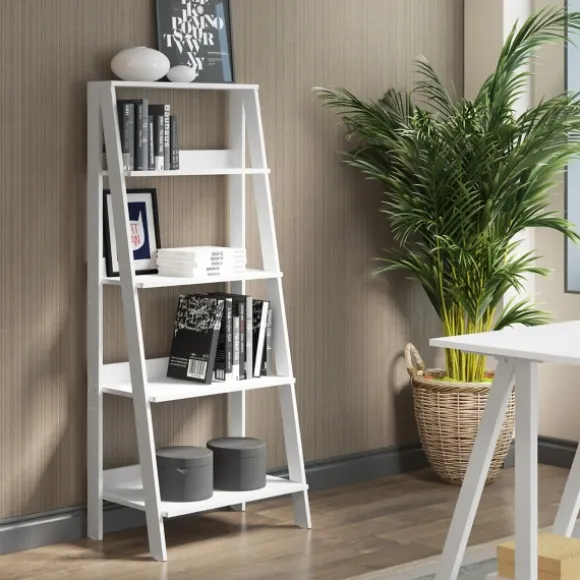 From Books To Wipes, You Can Place Anything On This White 4-Tier Ladder Bookshelf. This Piece Is So Versatile That It Wi…