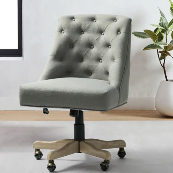 Revitalize Your Work-From-Home Space With Our Gray Dylan Upholstered Office Chair. Its Stylish Buttons And Ergonomic Shape Combine Both Fashion And Function! Office Chair Measures 23L X 25.5W X 34.5-38.5H In.; Seat Measures 23H In. Crafted Of Fabric And Wood Light Brown Wood Base Finish Hues Of Gray And Brown Ergonomic Shape Tufted Button Design Height-Adjustable Armless Design Comes With All-Directional Wheels On Five-Pronged Base Weight Capacity: 220 Lbs. Assembly Required Not Intended For Commercial Use Care: Spot Clean Or Professional Care Only.This Item Is Available At Kirklands.Com Only, Not Available In Stores. Please Note: This Item Cannot Be Shipped To Apo/Fpo Addresses.