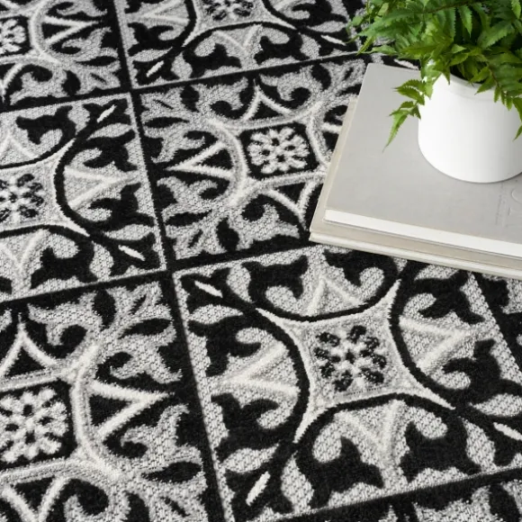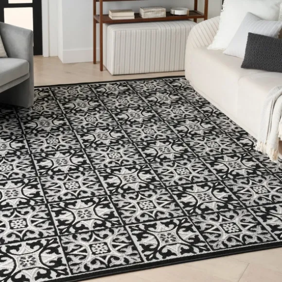 From The Living Room To The Patio, This Aloha Black Geometric Indoor/Outdoor Area Rug Will Complete Any Space. You’Ll Love The Subtle Texture Is Puts On Your Floors! Rug Measures 5 Ft. 3 In. In Length X 7 Ft. 5 In. In Heightcrafted Of Polypropylene With Latex Backingmachine-Made Constructiongeometric Tile Patternhues Of Black, Gray, And Whiteflat Weave With Raised, Cut Patternsstain Resistantrug Pad Not Includedcare: Vacuum Regularly With No Beater Bar. To Extend Life, Bring Indoors During Extreme Weather.This Item Is Available At Kirklands.Com Only, Not Available In Stores. Please Note: This Item Cannot Be Shipped To Apo/Fpo Addresses.
