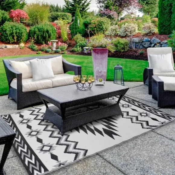 Kirkland’s Home Outdoor Rugs-Black And White Aztec Outdoor Area Rug, 4X6