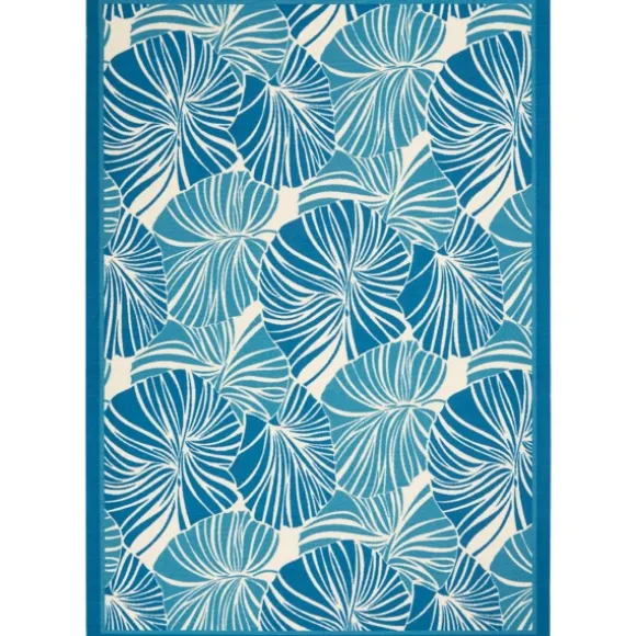 Kirkland’s Home Outdoor Rugs-Cerulean Botanical Shells Outdoor Area Rug, 5X7