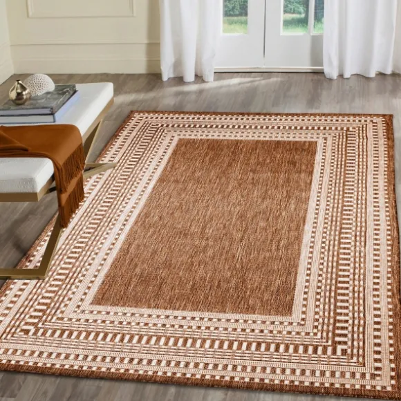 Refresh Anywhere From Your Sunroom To Your Patio Using This Rust Linear Macy Indoor/Outdoor Area Rug. Featuring Rich, Warm Hues And Multiple Border Patterns, This Rug Makes An Eye-Catching Statement In Any Lounge Space! Rug Measures 6 Ft. 6 In. In Length X 9 Ft. 4 In. In Heightcrafted Of Polypropylenepower Loomed Constructionflatwoven, Low Profile Designmultiple Bordered Patternhues Of Rust And Ivoryweather Resistant And Uv Stabilized For Enhanced Fade Resistancesafe For Outdoor Userug Pad Not Includedmade In Turkeycare: Vacuum Regularly. Blot Spills With A Mild Detergent And Clean Cloth.This Item Is Available At Kirklands.Com Only, Not Available In Stores. Please Note: This Item Cannot Be Shipped To Apo/Fpo Addresses.
