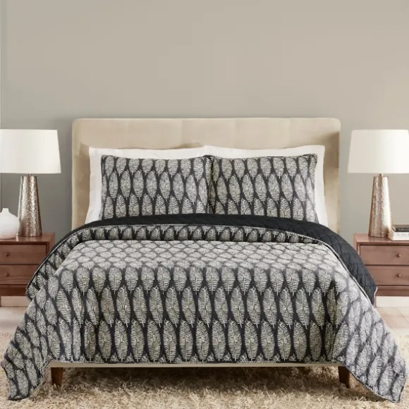 Kirkland’s Home Quilts-Ayesha Curry Black And White Leaf Queen Quilt Set