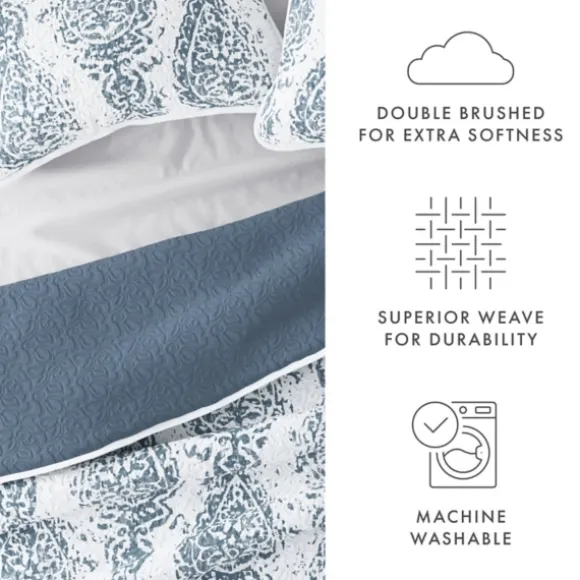 This Blue Damask Reversible 3-Pc. King Quilt Set Will Put A Fresh Touch Of Beauty On Your Bed. With A Reversible Design,…
