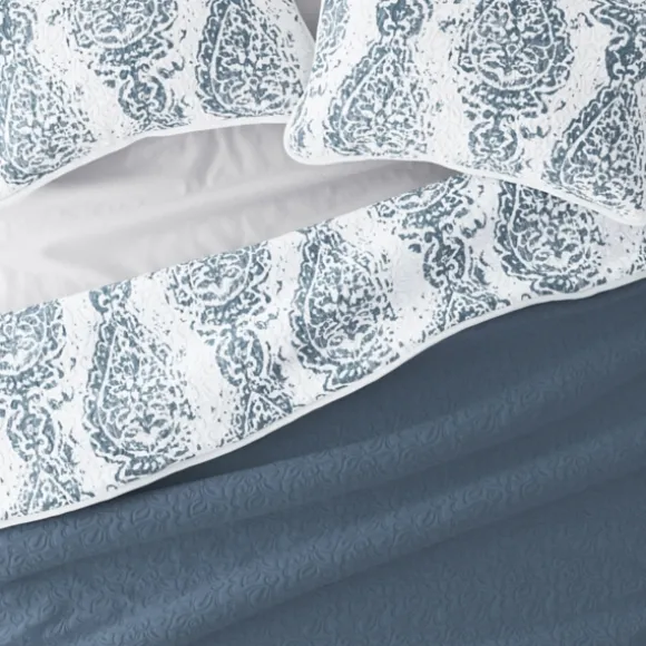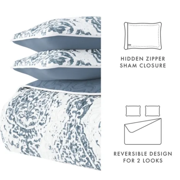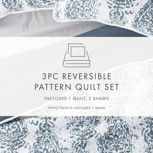 Kirkland’s Home Quilts-Blue Damask Reversible 3-Pc. Queen Quilt Set