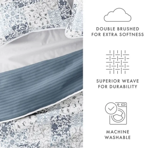 Bring Comfort And Style To Your Bedroom With This Blue Patchwork Reversible 3-Pc. Queen Quilt Set! You’Ll Love The Scroll Patterns And The Soft, Double-Brushed Texture. Set Includes One (1) Quilt, And Two (2) Pillow Shamsquilt Measures 90L X 94W In.Each Sham Measures 26L X 20W In.Crafted Of 100% Double-Brushed, Imported Microfiberfeatures A Reversible Designside One Features A Scrolled Patchwork Designside Two Features A Solid Designhues Of Blue, Gray, And White95 Gsmshams Include Hidden Zipper Closuresfade And Wrinkle Resistantcare: Machine Wash In Cold Water. Do Not Use Bleach Or Fabric Softener. Tumble Dry On Low Heat Setting.This Item Is Available At Kirklands.Com Only, Not Available In Stores. Please Note: This Item Cannot Be Shipped To Apo/Fpo Addresses.