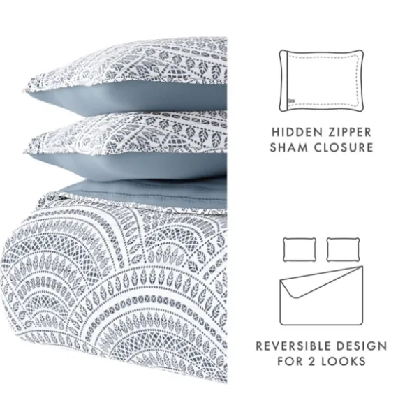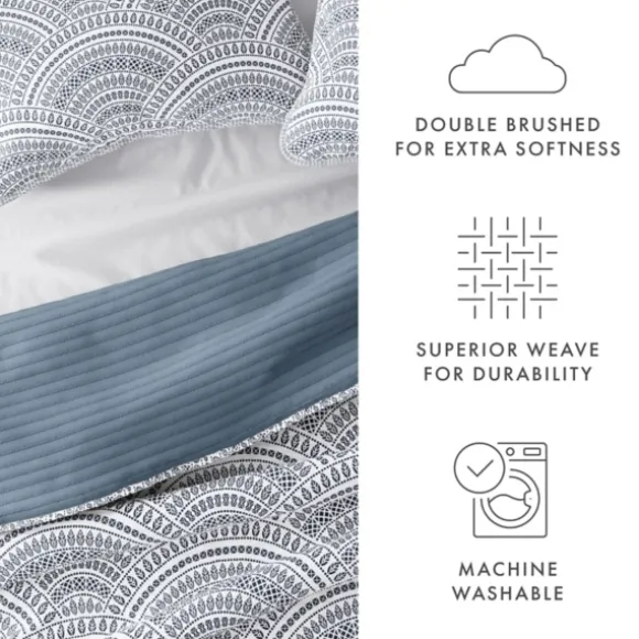 Bring Comfort And Style To Your Bedroom With This Blue Scalloped Reversible 3-Pc. Queen Quilt Set! You’Ll Love The Bohemian Pattern And The Soft, Double-Brushed Texture. Set Includes One (1) Quilt, And Two (2) Pillow Shamsquilt Measures 90L X 94W In.Each Sham Measures 26L X 20W In.Crafted Of 100% Double-Brushed, Imported Microfiberfeatures A Reversible Designside One Features A Scalloped Patternside Two Features A Solid Designhues Of Blue And White95 Gsmshams Include Hidden Zipper Closuresfade And Wrinkle Resistantcare: Machine Wash In Cold Water. Do Not Use Bleach Or Fabric Softener. Tumble Dry On Low Heat Setting.This Item Is Available At Kirklands.Com Only, Not Available In Stores. Please Note: This Item Cannot Be Shipped To Apo/Fpo Addresses.