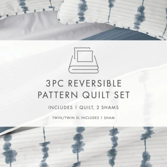 Kirkland’s Home Quilts-Blue Shibori Reversible 3-Pc. King Quilt Set