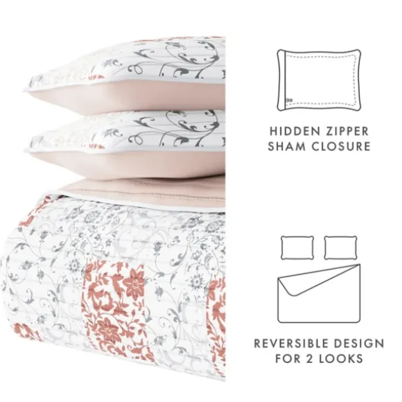 Sleep Better By Adding Style And Comfort To Your Bed! Our Blush Patchwork Reversible 3-Pc. King Quilt Set Is Made From Double-Brushed Microfiber, Making It Perfect For Any Bedroom. Set Includes One (1) Quilt, And Two (2) Pillow Shamsquilt Measures 96L X 106W In.Each Sham Measures 36L X 20W In.Crafted Of 100% Double-Brushed, Imported Microfiberfeatures A Reversible Designside One Features A Scrolled Patchwork Designside Two Features A Solid Designhues Of Pink, White, Red, And Gray95 Gsmshams Include Hidden Zipper Closuresfade And Wrinkle Resistantcare: Machine Wash In Cold Water. Do Not Use Bleach Or Fabric Softener. Tumble Dry On Low Heat Setting.This Item Is Available At Kirklands.Com Only, Not Available In Stores. Please Note: This Item Cannot Be Shipped To Apo/Fpo Addresses.