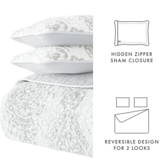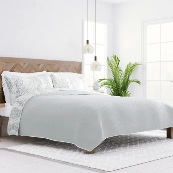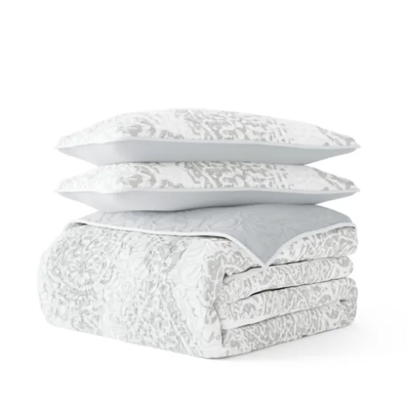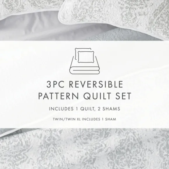 Kirkland’s Home Quilts-Gray Damask Reversible 3-Pc. Queen Quilt Set