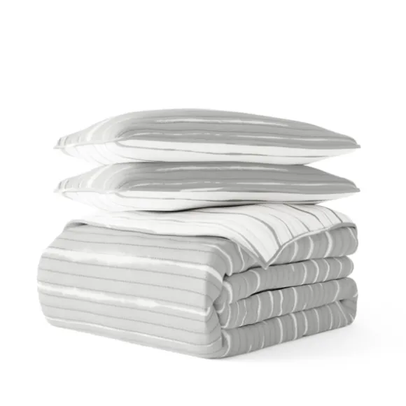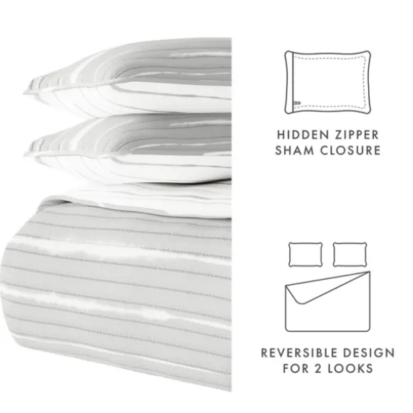 Refresh Your Sleeping Sanctuary With Just One Flip! The Gray Linear Reversible 3-Pc. Queen Quilt Set Is Made With Microf…
