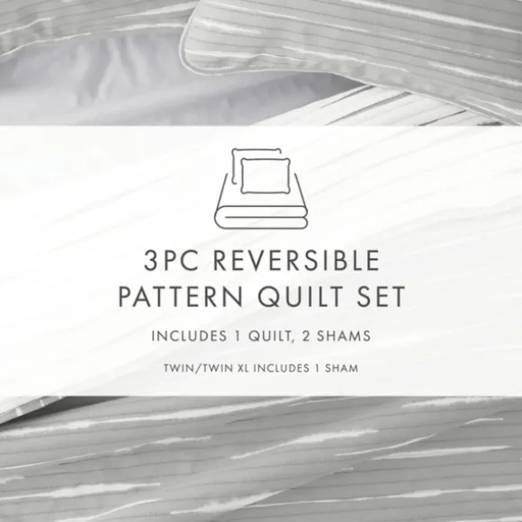 Kirkland’s Home Quilts-Gray Linear Reversible 3-Pc. Queen Quilt Set