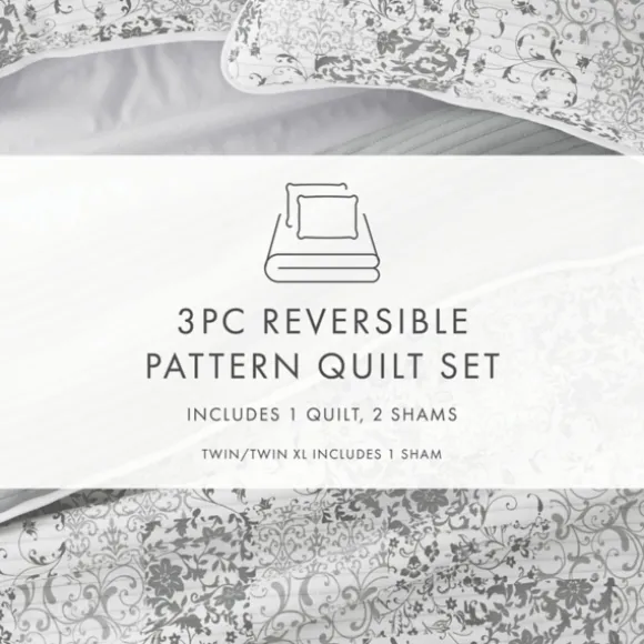 Transform Your Bed Into An Oasis Of Comfort With Our Gray Patchwork Reversible 2-Pc. Twin Quilt Set! You’Ll Love The Double-Brushed Softness And The Scroll Patterns. Set Includes One (1) Quilt, And One (1) Pillow Shamquilt Measures 90L X 70W In.Sham Measures 26L X 20W In.Crafted Of 100% Double-Brushed, Imported Microfiberfeatures A Reversible Designside One Features A Scrolled Patchwork Designside Two Features A Solid Designhues Of Gray And White95 Gsmsham Includes A Hidden Zipper Closurefade And Wrinkle Resistantcare: Machine Wash In Cold Water. Do Not Use Bleach Or Fabric Softener. Tumble Dry On Low Heat Setting.This Item Is Available At Kirklands.Com Only, Not Available In Stores. Please Note: This Item Cannot Be Shipped To Apo/Fpo Addresses.