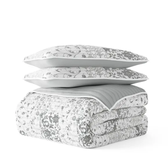 Bring Comfort And Style To Your Bedroom With This Gray Patchwork Reversible 3-Pc. King Quilt Set! You’Ll Love The Scroll…