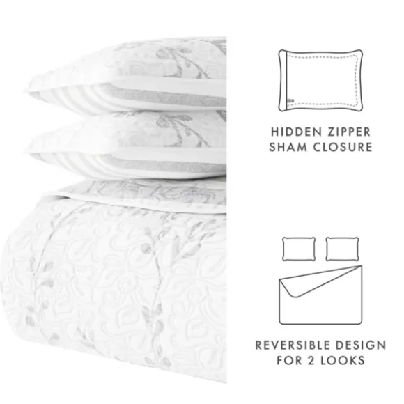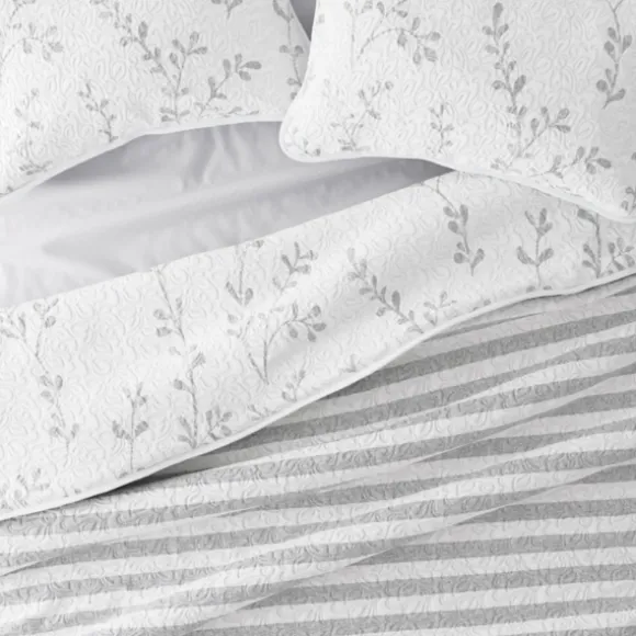Flip Between An Elegant Or Casual Bed Design With This Gray Vines Reversible 2-Pc. Queen Quilt Set! Detailed With Floral…