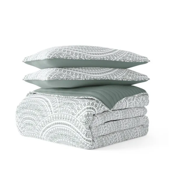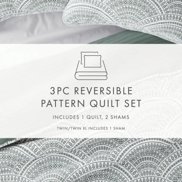 Kirkland’s Home Quilts-Green Scalloped Reversible 3-Pc. Queen Quilt Set