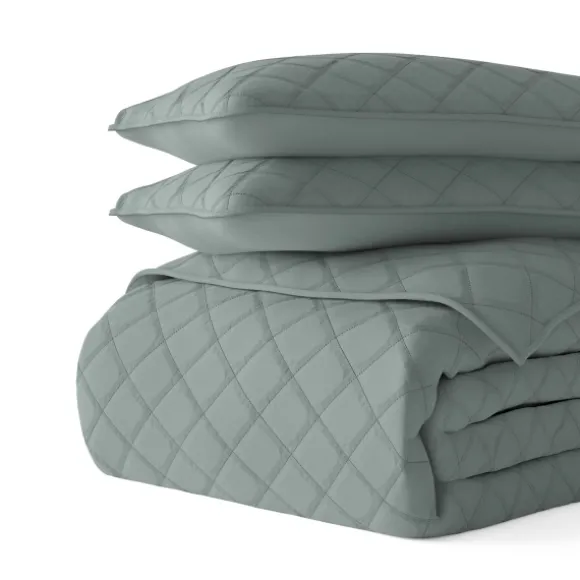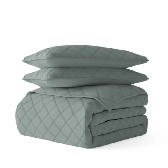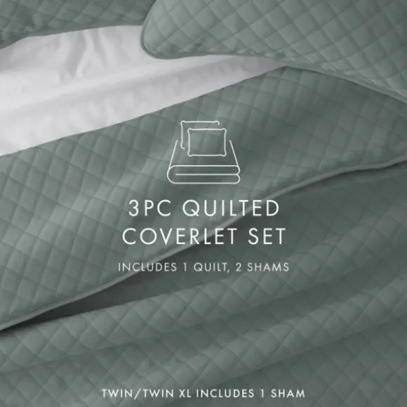 Soften Your Space With The Lovely Hue And Smooth Touch Of Our Green Stitched Diamond 3-Pc. King Quilt Set. Its Subtle, S…
