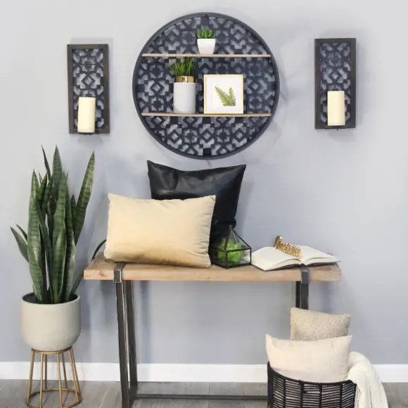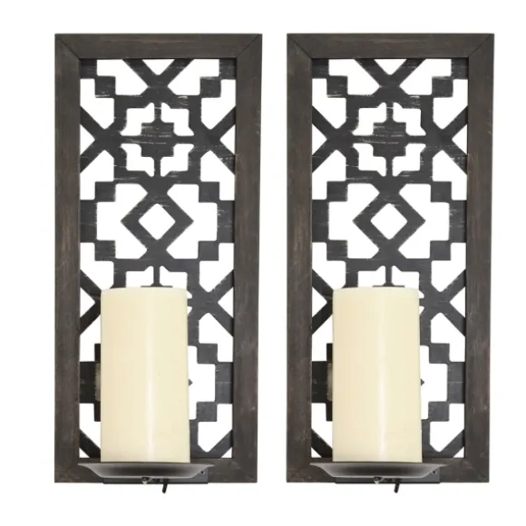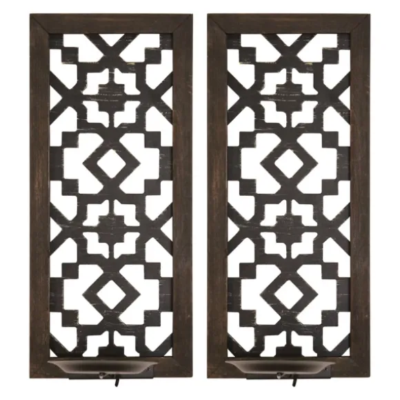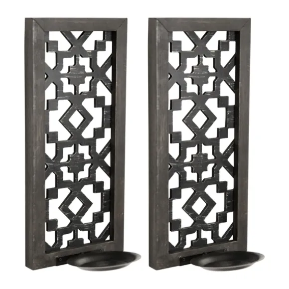 Illuminate Your Home Decor With These Black Ornate Laser Cut Sconces. You’Ll Love How The Dramatic Pattern Brings A Bold Look To Any Wall In Your Home! Set Includes Two (2) Sconces Sconces Measure 6.75L X 1W X 15H In. Crafted Of Wood Black Finish Decorative Laser Cut Design Each Sconce Accommodates One (1) Pillar Candle; Candles Sold Separately Led Flameless Candles Recommended Hangs From Back-Mounted Hardware Care: Wipe Clean With A Damp Cloth.This Item Is Available At Kirklands.Com Only, Not Available In Stores. Please Note: This Item Cannot Be Shipped To Apo/Fpo Addresses.