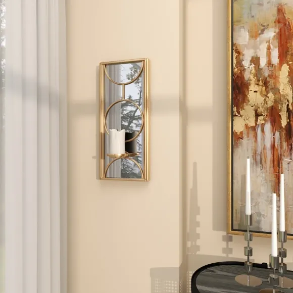 Our Gold Mirrored Geometric Sconce Is A Beautiful Combination Of Simple Yet Elegant Elements! You’Ll Love The Way This Piece Looks Hanging In Your Modern Styled Foyer. Sconce Measures 8.3L X 4.8W X 18H In.Crafted Of Iron, Wood, And Mirrorbrushed Gold Finishfeatures Mirror Design With Geometric Trimaccommodates One (1) Votive Or Pillar Candle; Not Includedhangs From Back-Mounted Hardwareweight: 3.7 Lbs.Care: Dust With A Soft, Dry Cloth. Not Suggested For Outdoor Use.This Item Is Available At Kirklands.Com Only, Not Available In Stores. Please Note: This Item Cannot Be Shipped To Apo/Fpo Addresses.Warning:Cancer And Reproductive Harm – For More Information Go Towww.P65Warnings.Ca.Gov .