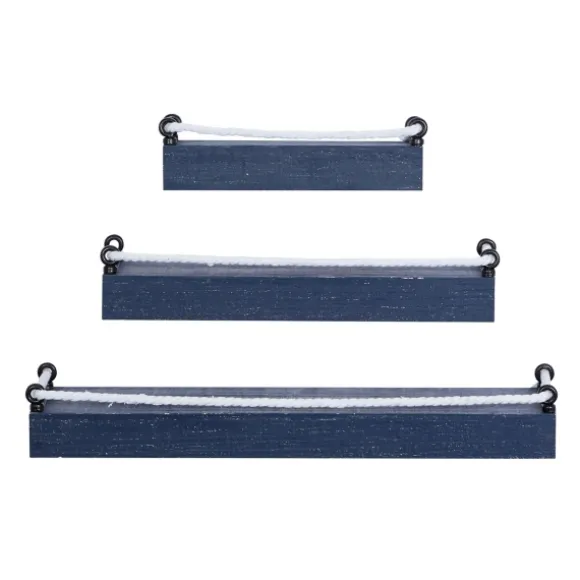 Add A Fun Nautical Theme To Any Room With These Wall Shelves. The Blue Nautical 3-Pc. Wood Shelves Have All The Eye-Catching Style Your Space Needs To Stand Out. Set Includes Three (3) Shelveslarge Shelf Measures 32L X 8W X 5H In.Medium Shelf Measures 25L X 7W X 4H In.Small Shelf Measures 17L X 5W X 4H In.Crafted Of Metal, Wood, And Ropehues Of Blue, Black, And Whitecoastal Designweight: 7 Lbs.Hangs From Back-Mounted Hardwarecare: Dust With A Soft, Dry Cloth.This Item Is Available At Kirklands.Com Only, Not Available In Stores. Please Note: This Item Cannot Be Shipped To Apo/Fpo Addresses.Warning:Cancer And Reproductive Harm – For More Information Go Towww.P65Warnings.Ca.Gov .