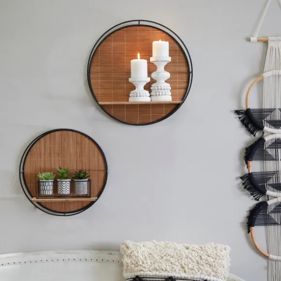 The Set Of Brown Bamboo Modern Wall Shelves Will Gorgeously Organize Your Decorative Accents! Made With Bamboo Backs And Wooden Shelves, They Balance A Natural Yet Chic Look. Set Includes Two (2) Shelveslarge Shelf Measures 18.7L X 6.3W X 19H In.Small Shelf Measures 6W X 15.5 In. In Diametercrafted Of Bamboo, Wood Composite, And Ironblack Iron Framebrown Bamboo Background Finishround Shapeeach Piece Features One (1) Wooden Shelfhangs From Back-Mounted Hardwarecare: Dust With A Soft, Dry Cloth.This Item Is Available At Kirklands.Com Only, Not Available In Stores. Please Note: This Item Cannot Be Shipped To Apo/Fpo Addresses.Warning:Cancer And Reproductive Harm – For More Information Go Towww.P65Warnings.Ca.Gov .