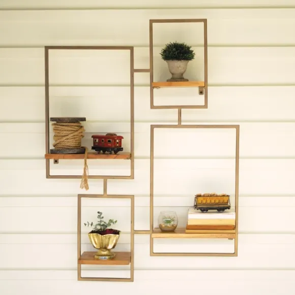 These Wall Shelves Are A Beautiful Blend Of Abstract Modern And Homey Rustic Design. The Geometric Honey Mango Wood Wall Shelves Will Add A Pop Of Style To Your Space. Shelves Measure 30.5L X 6W X 41H In.Crafted Of Mango Wood And Metalhoney Wood Finishgold Metal Finishgeometric Quadruple Shelf Designfeatures Four (4) Shelveshanging Hardware Not Includedweight: 11 Lbs.Care: Dust With A Soft, Dry Cloth.This Item Is Available At Kirklands.Com Only, Not Available In Stores. Please Note: This Item Cannot Be Shipped To Apo/Fpo Addresses.
