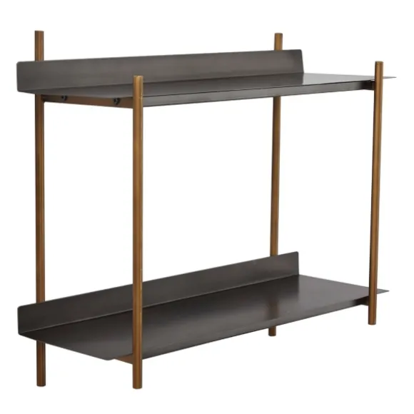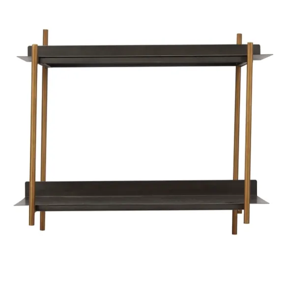 With Its Clean Lines And Angular Design, The Gray And Brass Metal Wall Shelf Displays Decor In A Chic Way! It’S The Perfect Addition To Any Modern, Minimalist, Or Industrial-Inspired Space. Shelf Measures 24L X 9W X 21H In.Crafted Of Metalmetallic Gray Shelf Finishbrass Frame Finishfeatures Two (2) Shelvesrectangular Shapehangs From Back-Mounted Hardwarecare: Dust With A Soft, Dry Cloth.This Item Is Available At Kirklands.Com Only, Not Available In Stores. Please Note: This Item Cannot Be Shipped To Apo/Fpo Addresses.