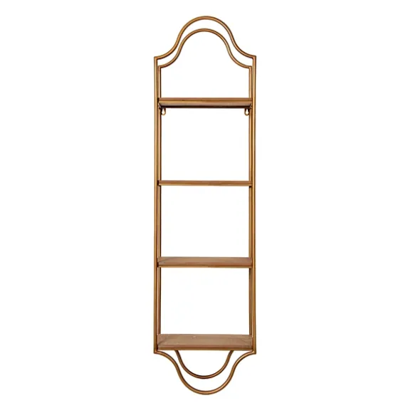 Display Your Favorite Items In A Glamorous Way With Our Wood And Metal Gold Wall Shelf! This Beautiful Shelf Is Perfect For Storing Smaller Items And Finishing Off Your Space.Wall Shelf Measures 12L X 6W X 44H In. Crafted Of Wood Composite And Metal Gold Metal Finish Arched Design Features Four (4) Shelves Weight: 5 Lbs. Weight Capacity: 10 Lbs. No Assembly Required Not Intended For Commercial Use Hangs From Back-Mounted Hardware Care: Dust With A Soft, Dry Cloth.This Item Is Available At Kirklands.Com Only, Not Available In Stores.