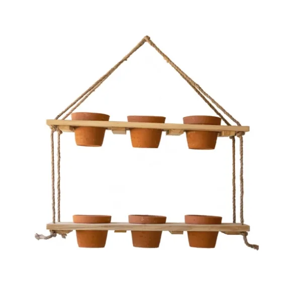 The Wooden 2-Tier Hanging Shelf With Clay Pots Is A Charming Way To Display Your Small Succulents! Its Natural Design Will Easily Match Any Home Interior. Shelf Measures 30L X 10W X 43H In.Crafted Of Wood And Ropenatural Finishfeatures Two (2) Wooden Shelves With Openings For Clay Potsincludes Six (6) Clay Potshangs From Attached Ropecare: Dust With A Soft, Dry Cloth.This Item Is Available At Kirklands.Com Only, Not Available In Stores. Please Note: This Item Cannot Be Shipped To Apo/Fpo Addresses.