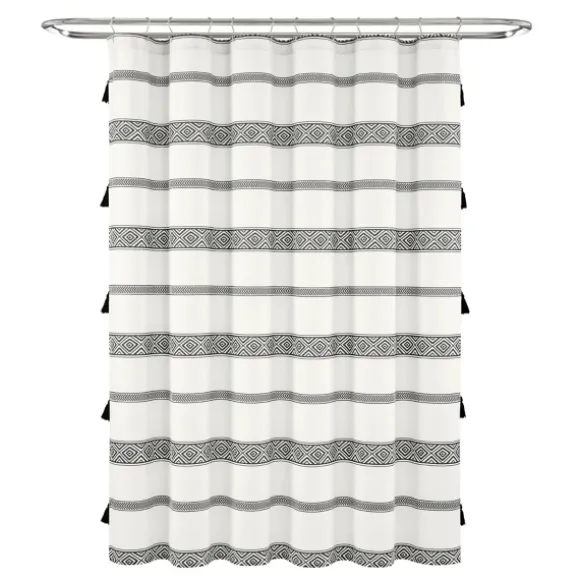 Kirkland’s Home Shower Curtains-Black And White Striped Boho Shower Curtain
