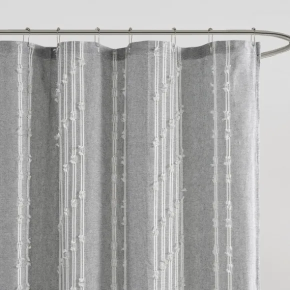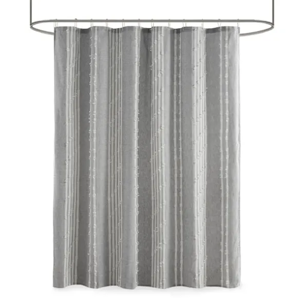 The Gray Cotton Jacquard Shower Curtain Offers An Eye-Catching Update To Any Bathroom Decor. This 100% Cotton Shower Cur…