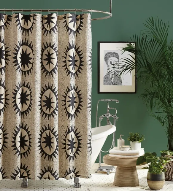 Lend A Bold, Celestial Look To Your Bathroom Using This Justina Blakeney Soleil Shower Curtain! The Sunburst Medallions And Dotted Patterns Make An Eye-Catching Statement.Curtain Measures 72L X 72H In.Crafted Of Cottonfeatures Sunburst Medallions And Dotted Patternshues Of Tan And Black140 Thread Countcare: Machine Wash Cold On Gentle Cycle. Do Not Bleach. Tumble Dry Low.This Item Is Available At Kirklands.Com Only, Not Available In Stores. Please Note: This Item Cannot Be Shipped To Apo/Fpo Addresses.