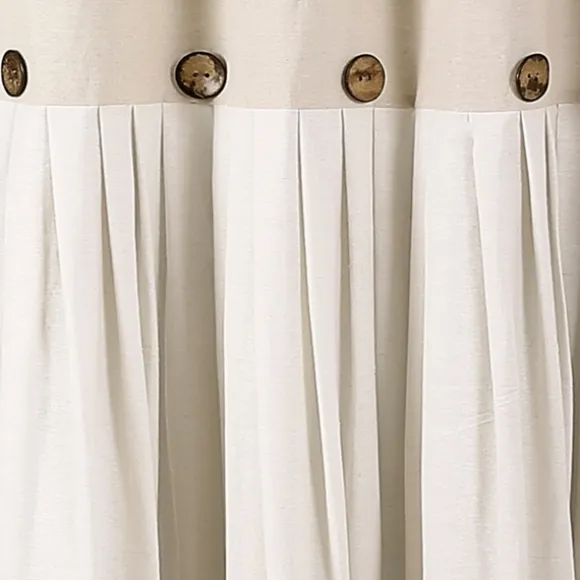 This Linen Button Shower Curtain Will Add An Elegant Look To Your Bathroom Space. The Natural Linen Color Is Perfect To Match Any Existing Decor.Shower Curtain Measures 72L X 72H In. Crafted Of Cotton Linen Blend Linen Finish Two Tone Design Brown Button Accents Hues Of Cream, Tan, And Brown Perforations For Shower Curtain Hooks; Hooks Not Included Curtain Is Unlined; Liner Not Included Care: Machine Wash Cold In A Mesh Bag With Similar Colors. Gentle Cycle Only. Use Only Non-Chlorine Bleach As Needed.This Item Is Available At Kirklands.Com Only, Not Available In Stores. Please Note: This Item Cannot Be Shipped To Apo/Fpo Addresses.
