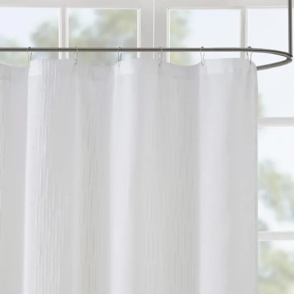 Our White Sheer Shower Curtain Will Help Freshen Up Your Bathroom. You Will Love How This Sheer, Textured Shower Curtain Brings Dimension To Your Space! Shower Curtain Measures 72L X 72H In.Crafted Of 100% Polyesterwhite Sheer Fabric Finishfeatures Striped Texture Fabricperforations For Shower Curtain Hooks; Hooks Not Includedcurtain Is Unlined; Liner Not Includedcare: Machine Washable.This Item Is Available At Kirklands.Com Only, Not Available In Stores. Please Note: This Item Cannot Be Shipped To Apo/Fpo Addresses.