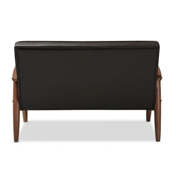 Give Your Home An Elegant And Romantic Look With Our Faux Brown Leather And Rubberwood Loveseat! The Warm Hues Will Crea…