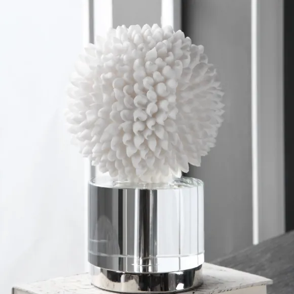 This White Sea Shell Sphere Crystal Base Statue Is Perfect For A Beach Themed Room Or As A Statement Piece Among Any Typ…