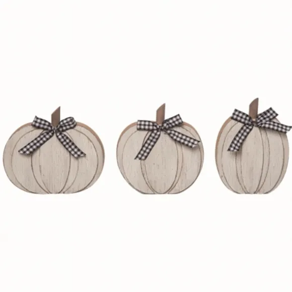 Complete Your Fall Decorations With These Lovely White Wood Pumpkins With Bows! With Their Sweet, Rustic Style, They Will Give Your Home The Perfect Autumnal Touch! Set Includes Three (3) Pumpkin Statuesfirst Pumpkin Measures 8L X 1.25W X 7H In.Second Pumpkin Measures 5.75L X 1.25W X 7.75H In.Third Pumpkin Measures 7L X 1.25W X 7.5H In.Crafted Of Wood Pumpkin Designdistressed White Finishfeature Plaid, Black And White Bowscare: Spot Clean Only.This Item Is Available At Kirklands.Com Only, Not Available In Stores. Please Note: This Item Cannot Be Shipped To Apo/Fpo Addresses.